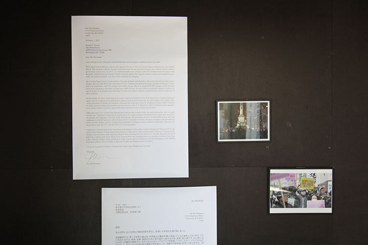 In Full Flow is a project that examines the impact citizens have on pressuring state officials to pass progressive refugee policies. After attending numerous public vigils in solidarity with refugees and researching refugee conditions, Joe Joe Orangias wrote and sent a series of letters to presidents and prime ministers of countries all over the world. This exhibition features enlargements of a selection of his letters, which advocate for welcoming more refugees and highlight citizen participation on this issue.